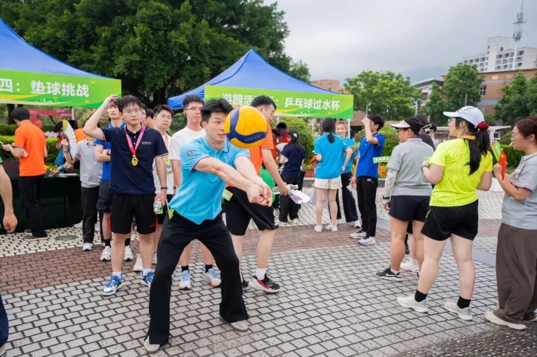 开场节目拉丁舞、健美操等点燃了活动现场气氛。体育游园会成为校园欢乐聚集地。投壶、指压板跳绳、飞盘九宫格等趣味项目,吸引师生踊跃参与。